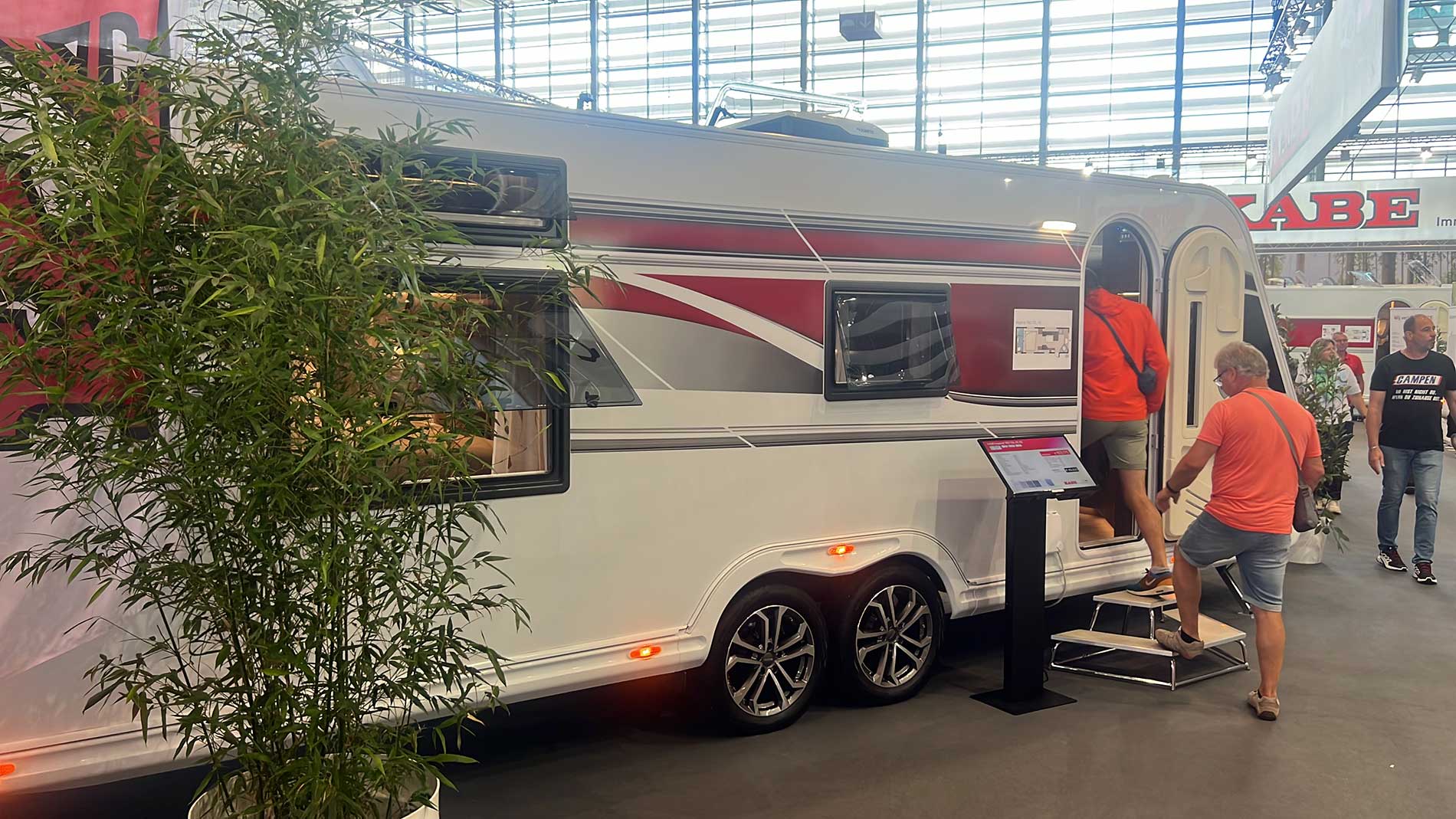 A tip: comfortable shoes are a must, and sporty clothing as well. The area is huge, with countless halls and booths. There is something to see – and eat – everywhere. Bring a bag, because flyers and brochures accumulate quickly. Names like Fendt, Hobby, Kabe, Dethleffs, Bürstner, Adria, Hymer, Carthago, Weinsberg, LMC, Sunlight, Niesmann+Bischoff, Malibu, Tabbert, Pössl, Laika, Concorde, and Knaus – all the big names in the caravan world are represented here.