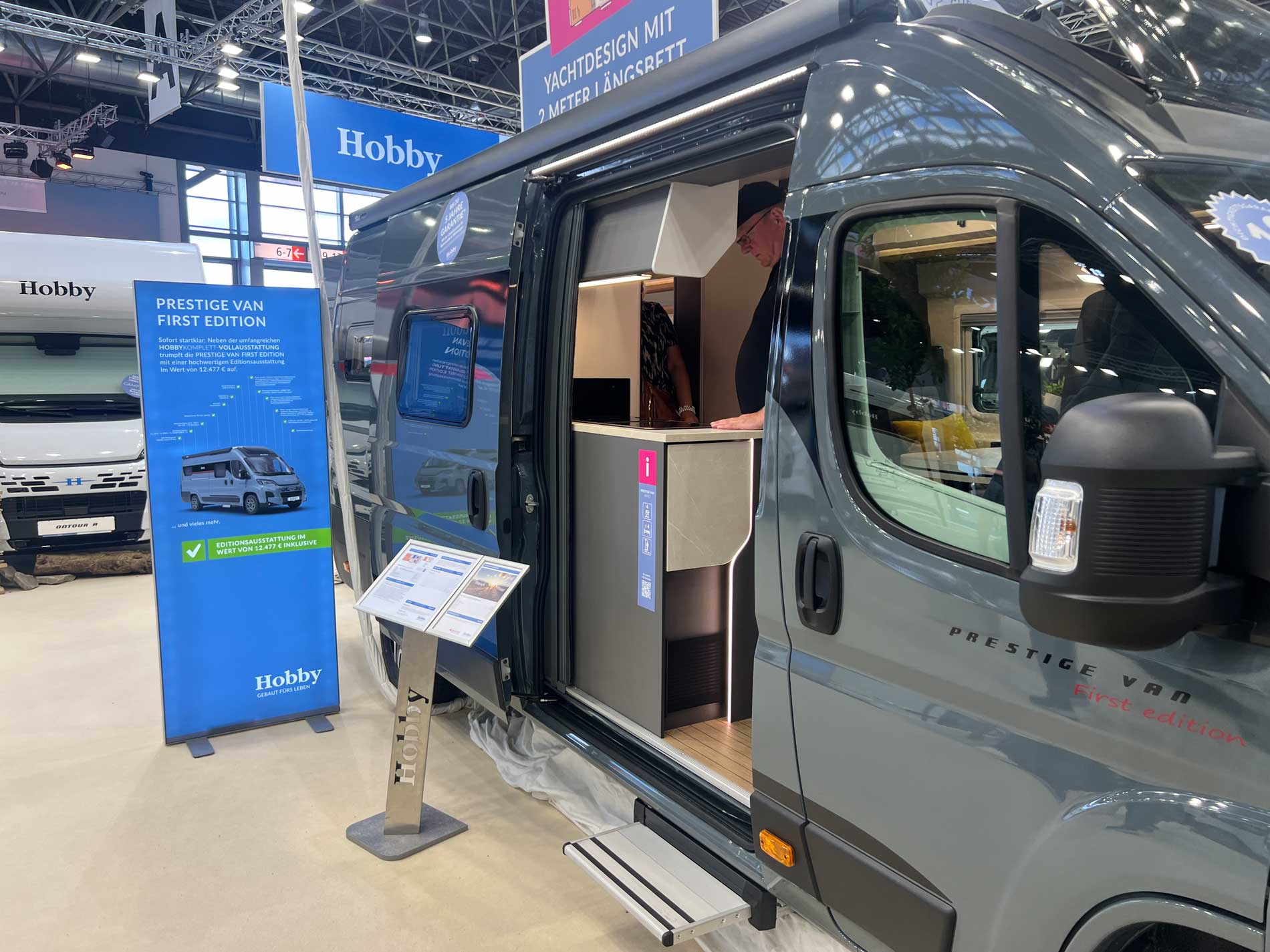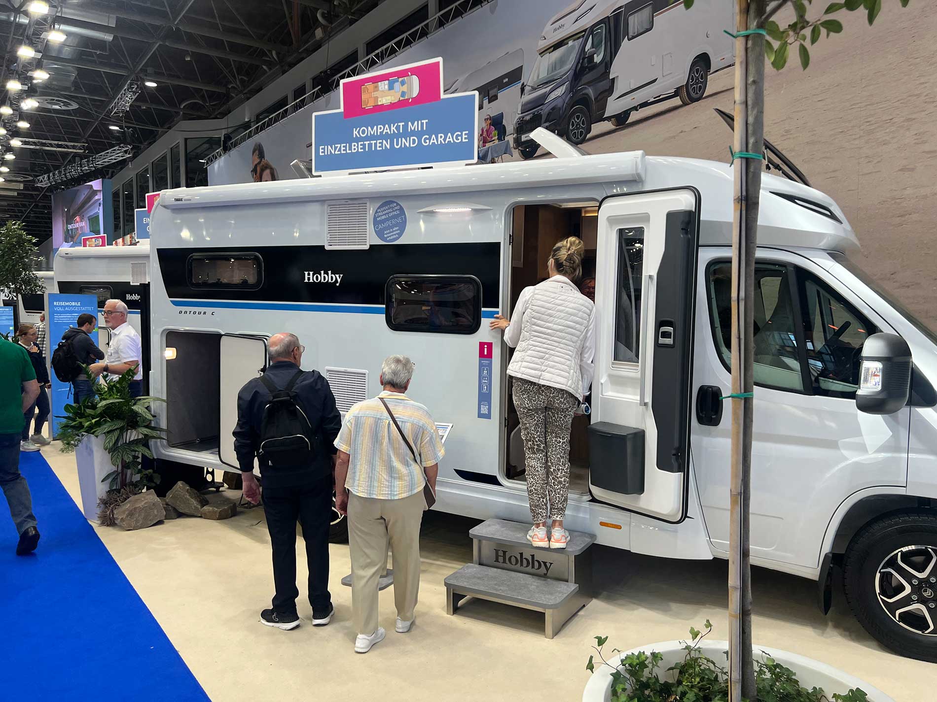 A tip: comfortable shoes are a must, and sporty clothing as well. The area is huge, with countless halls and booths. There is something to see – and eat – everywhere. Bring a bag, because flyers and brochures accumulate quickly. Names like Fendt, Hobby, Kabe, Dethleffs, Bürstner, Adria, Hymer, Carthago, Weinsberg, LMC, Sunlight, Niesmann+Bischoff, Malibu, Tabbert, Pössl, Laika, Concorde, and Knaus – all the big names in the caravan world are represented here.